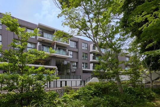This low-rise residence is located in Todoroki Valley, adjacent to the Tokyu Oimachi Line. Taking advantage of the site's shape, elevation difference, and natural environment, we created an open space between the tracks and the building, and, in conjunction with the exterior design, aimed to contribute to the creation of a beautiful streetscape that takes into consideration the scenery from the train windows.