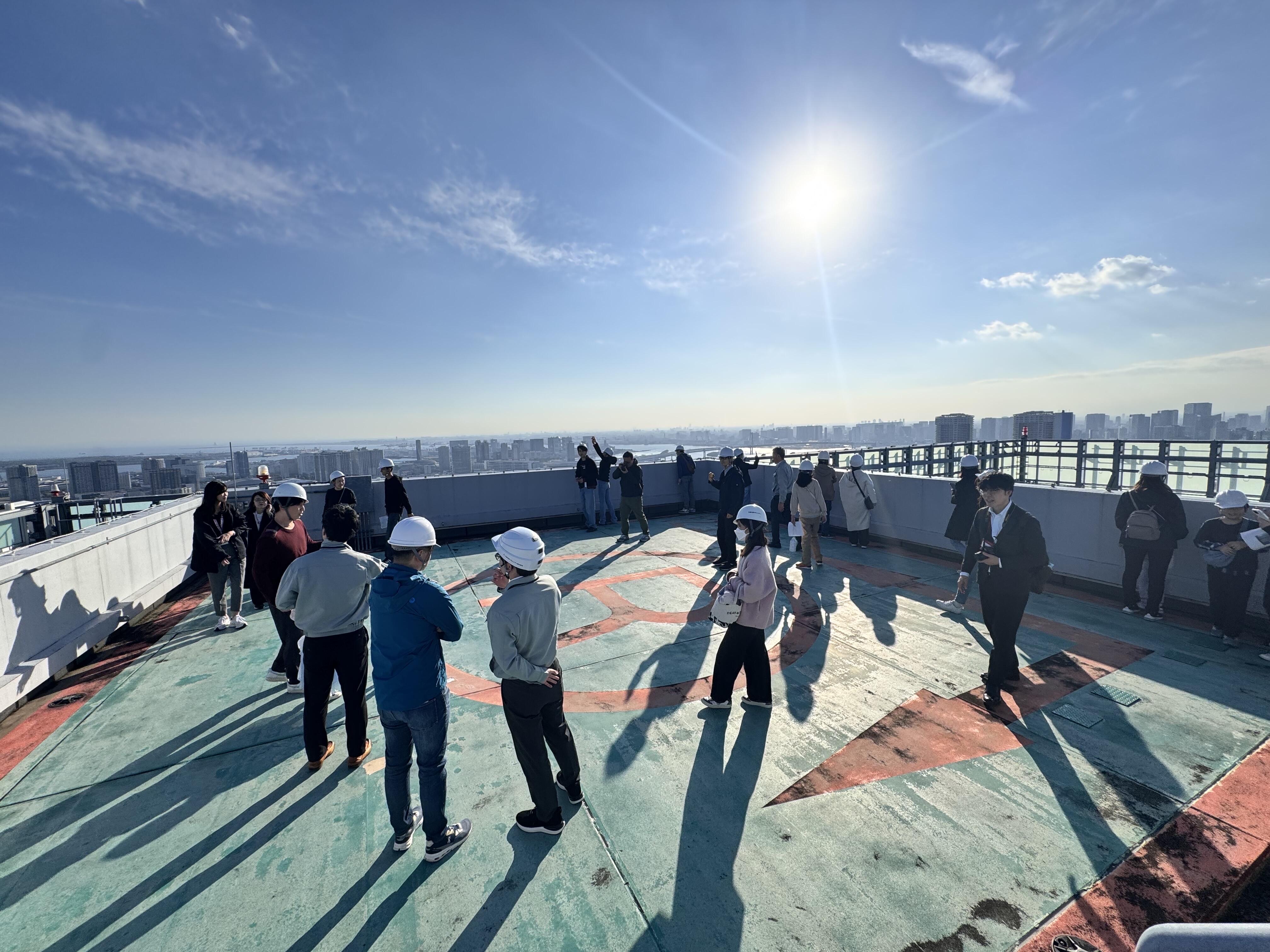マンションの地下(免震ピット)から屋上(ホバリングスペース)まで約10カ所の防災設備を見学し、建物の理解を深めました。