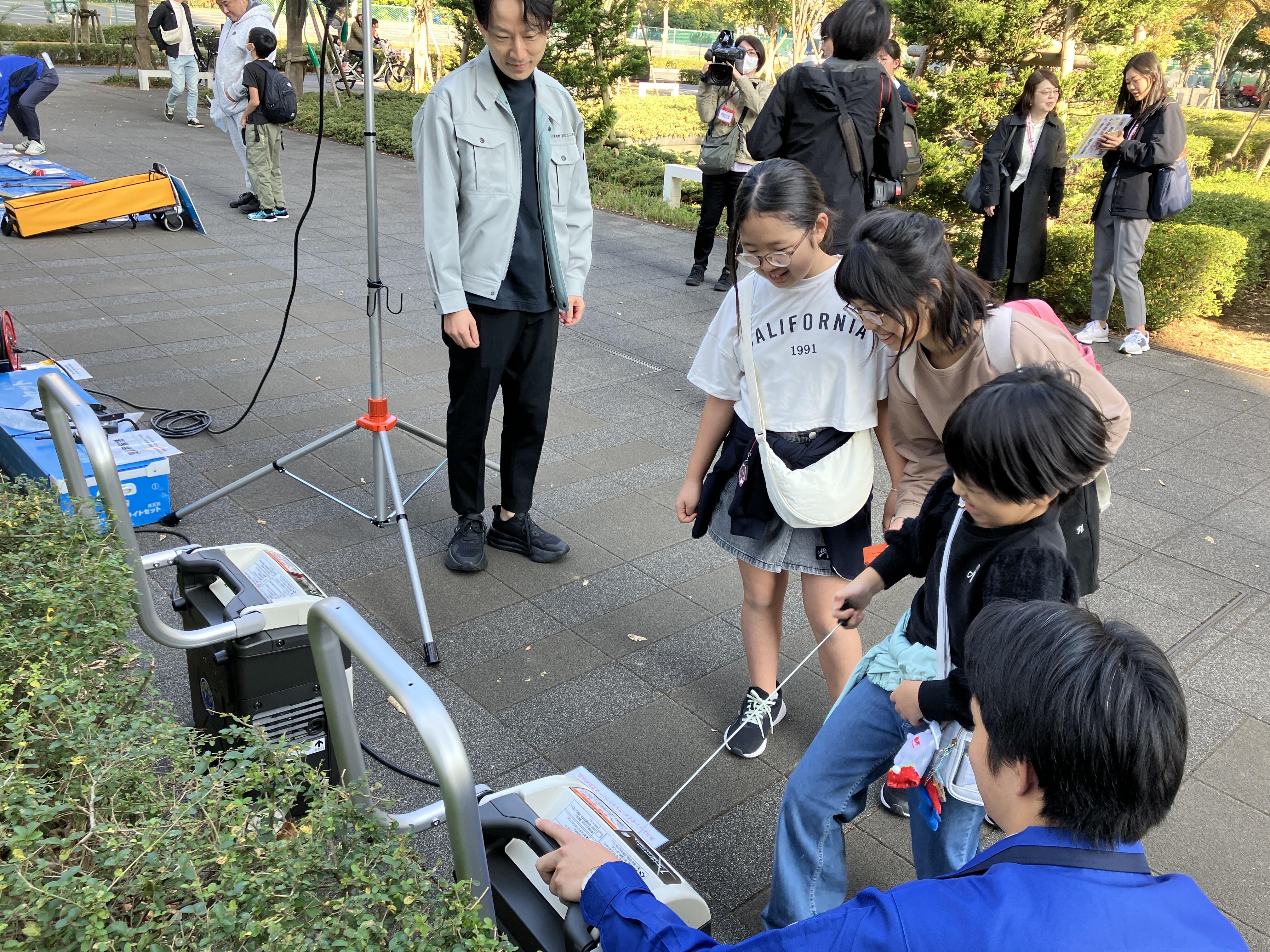 体験、発電機・LED投光器・無線機備品展示&紹介、浄水装置利用体験、伝言ダイヤル体験、