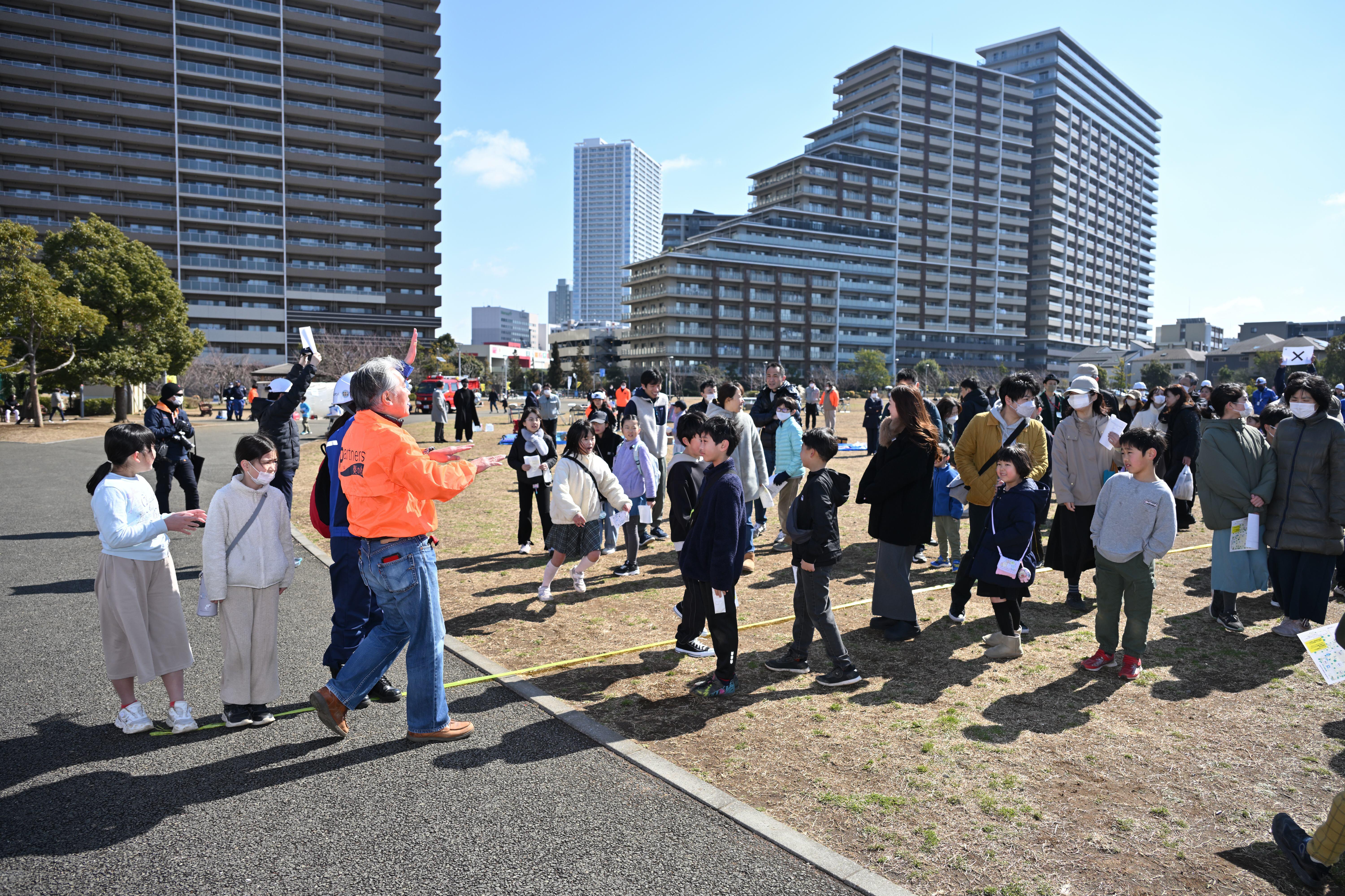 津田沼奏の杜は千葉県習志野市津田沼駅南側に位置し、土地区画整理事業によって整備され2013年にまちびらきをした約35haの新しいまちです。津田沼奏の杜エリアでの取り組みは、2015年に「ザ・パークハウス 津田沼奏の杜」の分譲マンションの防災訓練から始まりました。エリア全体への広がりは、「三菱地所グループの防災倶楽部」メンバーが過去の被災地を訪ね、被災地の方々から、被災生活で困ったことや助け合いの重要性を学び、その学びを共有したことが契機となっています。住民自ら周辺のマンションに声を掛けながら仲間を増やし、2018年よりエリアマネジメント組織の奏の杜パートナーズとの連携により、エリア内三菱地所レジデンス分譲マンションに加え、他社分譲マンションや戸建住宅を含む津田沼奏の杜エリア全体へと広がりました。現在は、約8,700人(2026年時点)の住民を対象とした防災訓練へと発展しています。