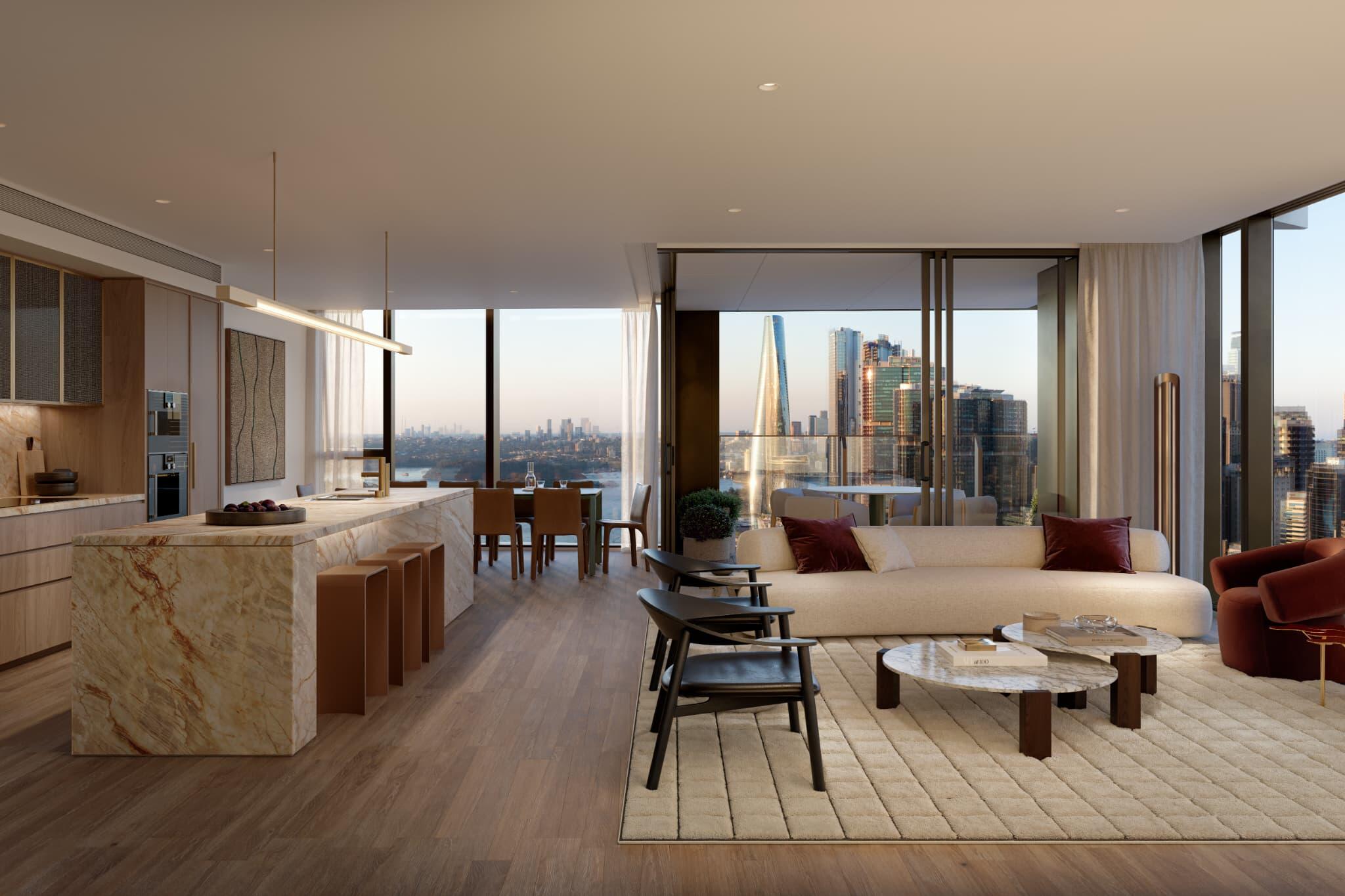 タワー(48階建て)のラグジュアリー住宅は1Bed~4Bedおよびサブペントハウス、ペントハウスの構成で、北側~東側はシドニー湾及びシドニーCBDの開放的な眺めを望み、アウトドアプール、インドアプール、ジム、スパ、ラウンジ、プライベートダイニング等の充実した共用施設を有します。2024年11月の販売開始からすでに6割以上(売上約8億豪ドル相当※1)が契約済みです。