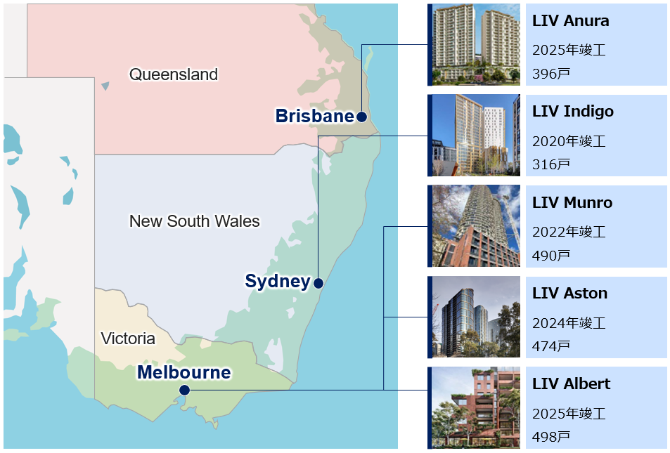 なお、「LIV」シリーズの最後の物件「LIV Albert」が2025年8月に開業を迎え、「LIV」全5棟が稼働を開始しました(内3棟は安定稼働済み)。当地の安定した経済成長と継続的な人口増加を背景とした増大する住宅需要に対し、当社が日本、米国、英国などで培った賃貸住宅の開発・運営の知見を活かして応えてまいります。