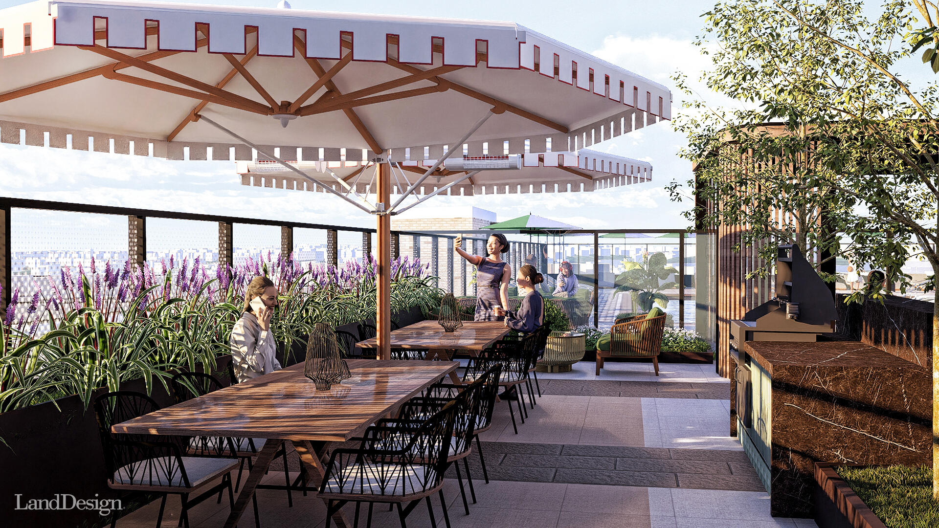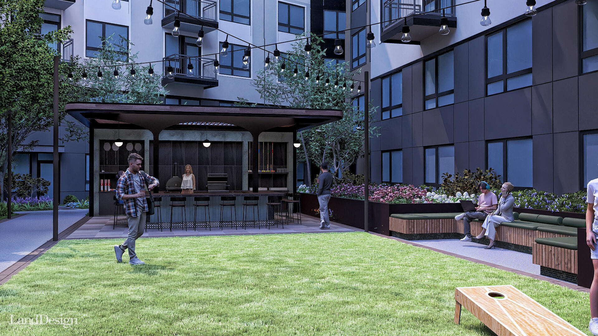 本プロジェクトでは、8階建の賃貸住宅1棟と4階建ての連棟型低層集合住宅(タウンホーム型住宅)4棟を建設し、総戸数は530 戸となる予定です。スタジオタイプ・1ベッド~3ベッド・タウンホーム型と多彩な住戸タイプを展開し、幅広い世帯構成に対応します。また、屋内外に約1,850㎡の共用設備を設け、最上階にクラブルーム・ラウンジ・プールを配置。中庭を活用したバーベキューグリルやピザオーブン、スパ付きドッグラン・フィットネスジム・コワーキングスペース・ゴルフシミュレーターなど、日々の暮らしを豊かにする設備も満載し、入居者に快適で便利なライフスタイルを提供するとともに、アーリントン郡のさらなる発展に貢献します。