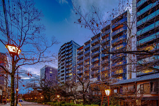 鴨川を間近にし、歴史深い東山の町並みを一望、都市の賑わいと古都の佇まいを愉しめる立地に位置し、多彩なライフスタイルに応えるホテルライクなサービスを提供しています。「寂(さび)」「 雅(みやび)」「 隠(かくれ)」をモチーフとして、京都のエッセンスを現代的に昇華させたデザインとなっています。