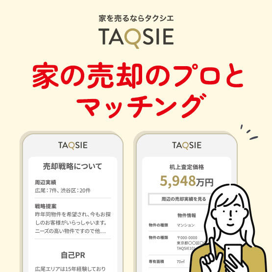 そんな悩みを解決するために誕生したのが、売却検討者と仲介・買取担当者とを結ぶマッチングサイト「TAQSIE(タクシエ)」です。